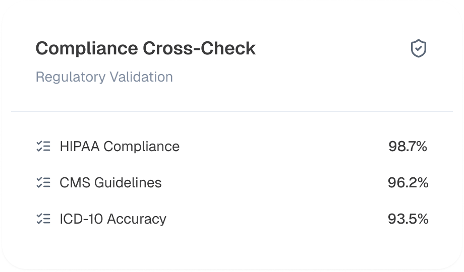 We cross-check coding with CMS, OIG, MAC, and HIPAA regulations to protect against audits, billing fraud, and noncompliance penalties.