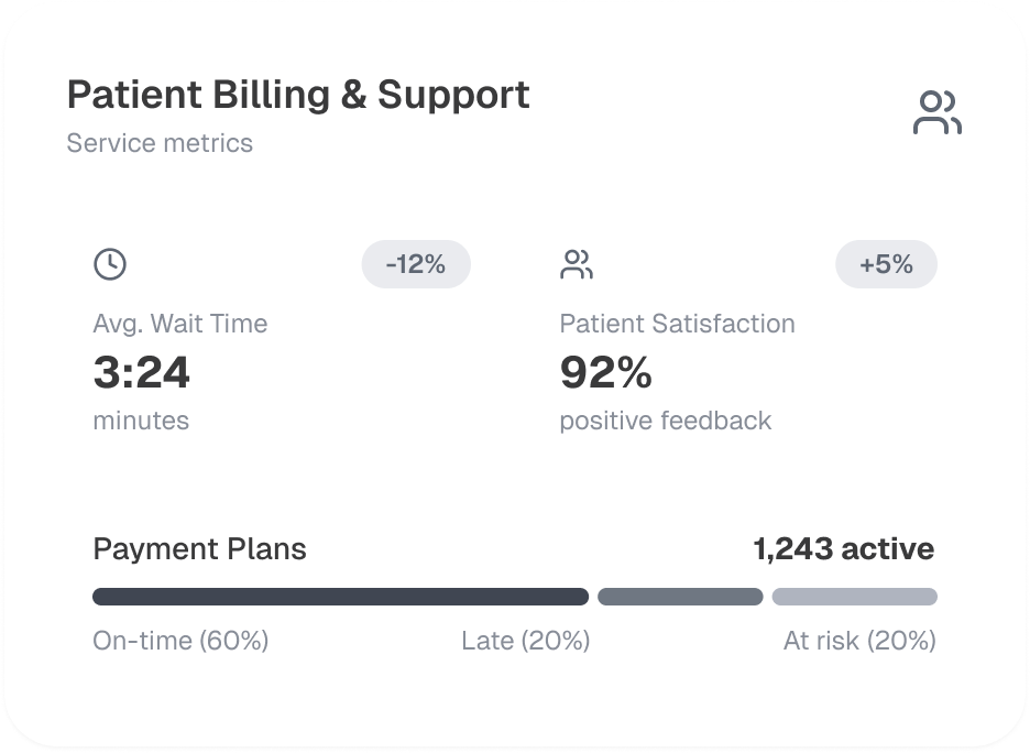 Our financial counselors assess patient eligibility for Sliding Fee Scale (SFS) programs, charity care, and government-sponsored plans such as Medicaid & Medicare. To improve self-pay recoveries, we offer structured patient payment plans, Health Savings Account (HSA) integration, and point-of-service (POS) collections.