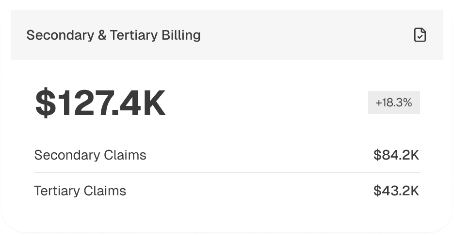 We provide customized dashboards, A/R aging trends, and revenue performance analytics, helping providers make data-driven decisions to improve financial health.