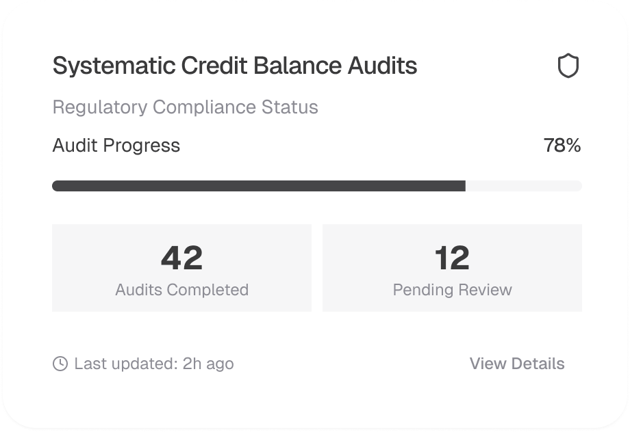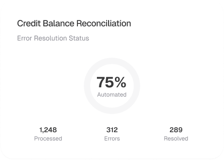 Our approach to credit balance resolution integrates automated reconciliation, compliance workflows, and financial reporting to ensure accurate, transparent transaction handling