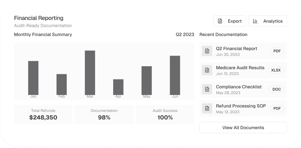 We ensure financial transparency with detailed reconciliation reports, audit logs, and refund tracking dashboards. Our real-time financial tools provide visibility into credit balances, refunds, and payer offsets, helping healthcare organizations optimize revenue cycles while staying compliant