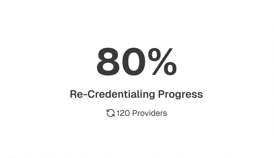 • Regular Renewals: Proactively manage license renewals, DEA registrations, board certifications, and malpractice coverage • Data Updates: Maintain CAQH profiles and provider databases to meet evolving payer standards • Continuous Compliance: Ensure up-to-date submissions and verifications to prevent lapses in coverage or network participation