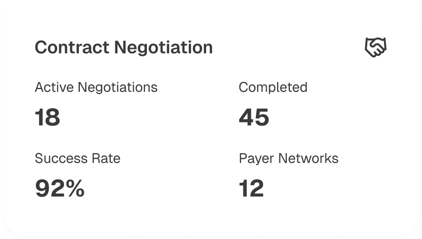 • Fee Schedule Analysis: Scrutinize payer proposals, compare against market benchmarks, and guide providers in negotiating optimal terms • Financial Well-Being: Maximize reimbursement rates and secure favorable contract clauses • Network Optimization: Expand or refine in-network participation to enhance revenue and patient access