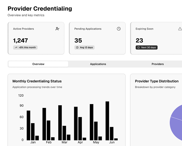 • Primary Source Verification: Validate each provider’s education, training, licenses, and certifications. • Employment History Checks: Confirm professional background to bolster credibility and compliance. • Compliance with Standards: Follow all state-specific and federal guidelines (e.g., NPPEs checks, DEA validations)